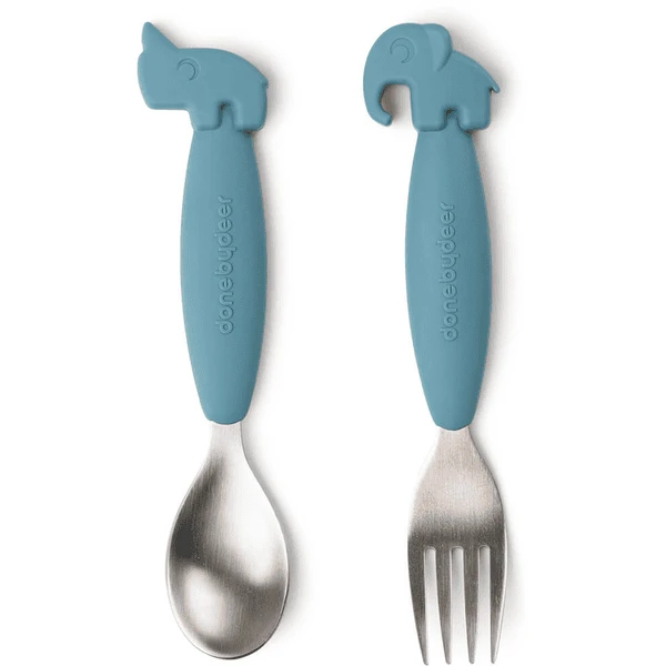 Done by Deer™ Löffel- und Gabelset Easy-grip, Deer friends Blau