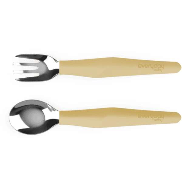 Esslern-Besteck besteht aus einer Gabel und einem Löffel aus Edelstahl